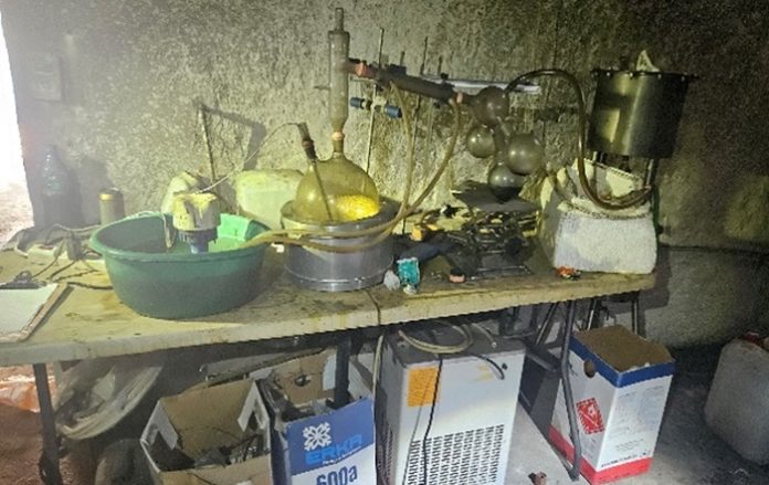En el lugar se aseguraron 75 kilos 900 gramos de marihuana, un sistema de destilación, un sistema de filtración por vacío, una bomba circulante de enfriamiento, un sistema de extracción al vacío con contenedores de gas, un dispositivo mezclador y un sistema de filtración.