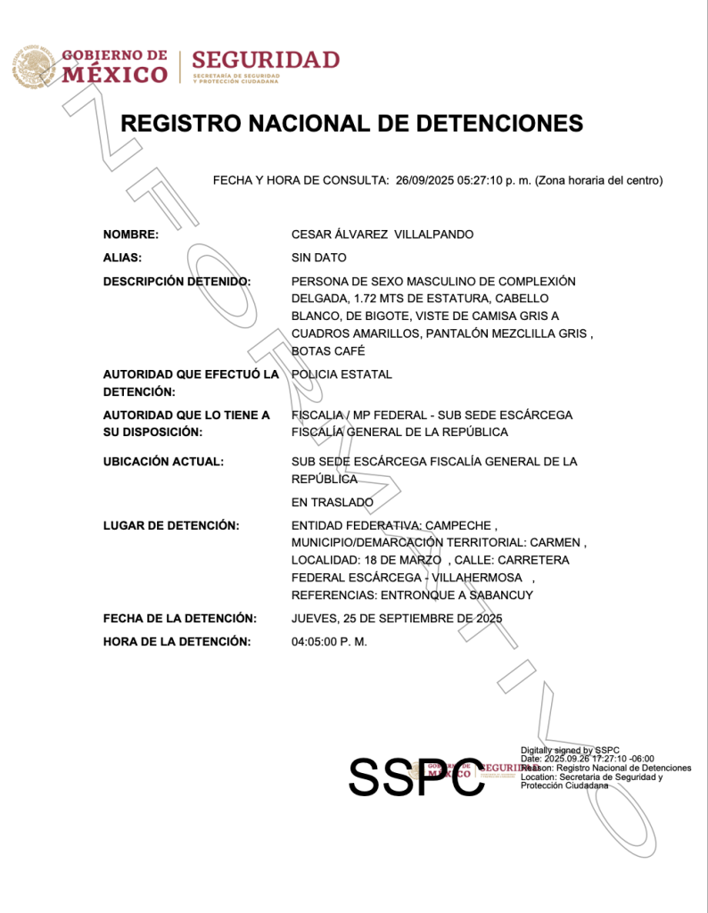 . Fue detenido en Sabancuy, Campeche, a bordo de una camioneta con reporte de robada