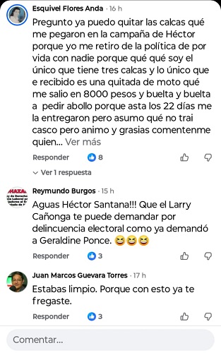 En algunos de los comentarios dicen que el popular «Larry Cañonga» podría demandar a Héctor Santana por delitos electorales, comentarios que publico en este espacio, tomando en cuenta que son del copión fake de nombre La Polaca en Nayarit.